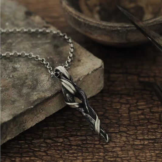 Dark Gothic Skull Death Scythe Pendant Necklace