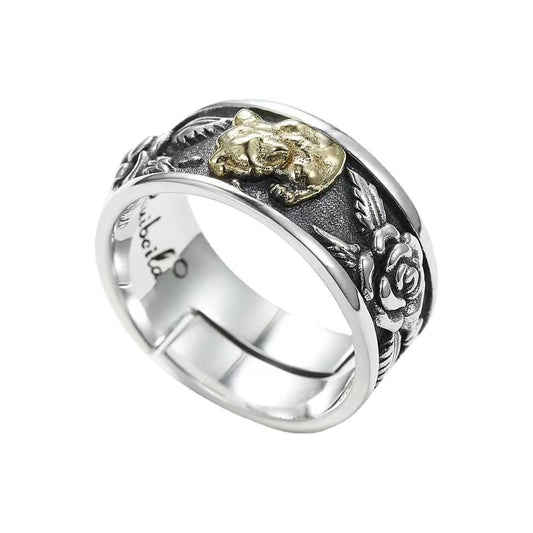 Rose Ring Guarded by Mysterious Cat Romantic Ring for Couples